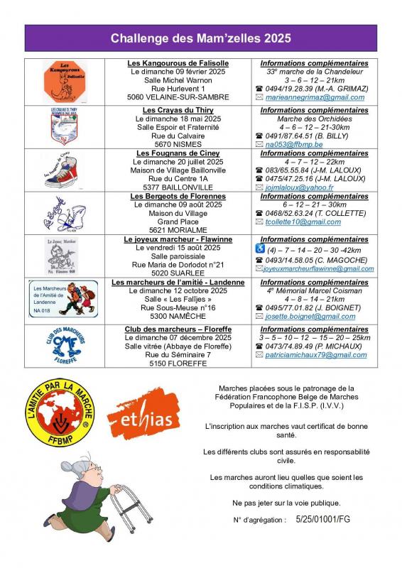 La marche est organisée sous le patronage de la Fédération Francophone Belge de Marches Populaires (FFBMP), de la F.B.S.P. et de l'I.V.V.